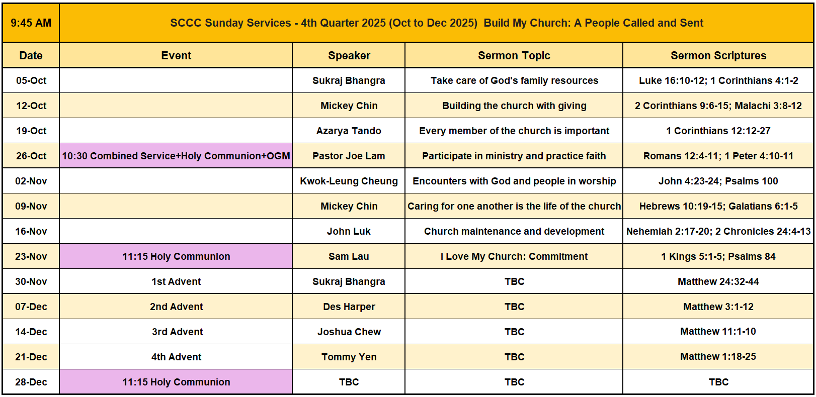 Sunday Prayer Meeting: 9:00 am– 9:30 am
